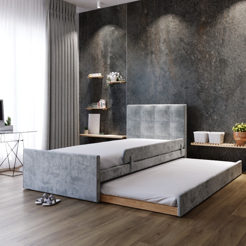מיטת ילדים - מיטת חבר מרופדת בד קטיפה דגם ג’ון